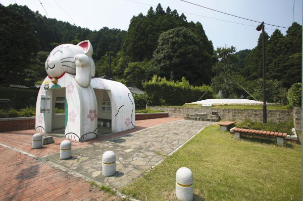 「追い出し猫」伝説の舞台となった西福寺の跡地に、犠牲となった猫たちを弔ったとされる猫塚があり、その周辺を公園として整備したもの。猫塚の前には、追い出し猫(招き猫側)をかたどったユニークなバス停留所「猫塚公園前」があり、宮若市乗合バスとふれタク(AIデマンドタクシー)が停車する。