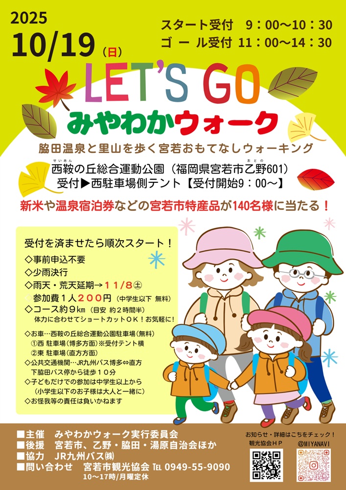 参加者に抽選で宮若ゆかりの豪華賞品が当たります!宮若路を楽しくウォーキング!