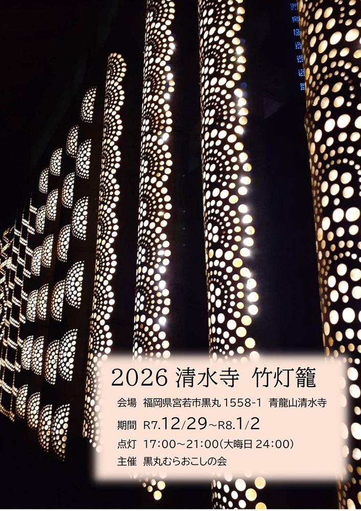 黒丸むらおこしの会主催、宮若市の年末の風物詩。清水寺の境内が竹灯籠の明かりに包まれます。